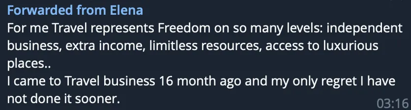 Our travel host agency is not a network marketing business. However, they are exclusively partnered with a Network Marketing business. You DO NOT need to partner with this company as well. You can simply just become a Travel Agent. Sharing this opportunity to become a travel agent with others will give you other revenue streams, and if you are interested in become a REP then please just ask the person you are talking to for more information.