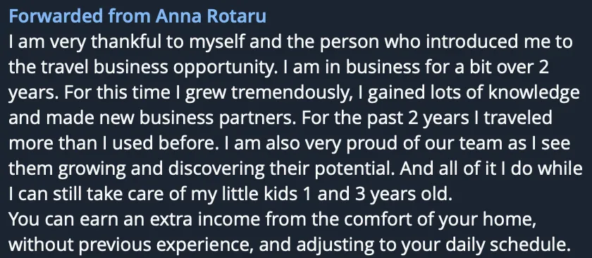 Starting my business in the travel industry was a pivotal moment for me. After 8 years as a stay-at-home mom, I was ready for a change but still wanted the flexibility to be there for my children's milestones and activities. This opportunity has allowed me to achieve that balance. I now enjoy the autonomy of being my own boss, working from anywhere, and the potential to earn more than a traditional job could offer. Most importantly, I can be present for my family, and that's priceless.